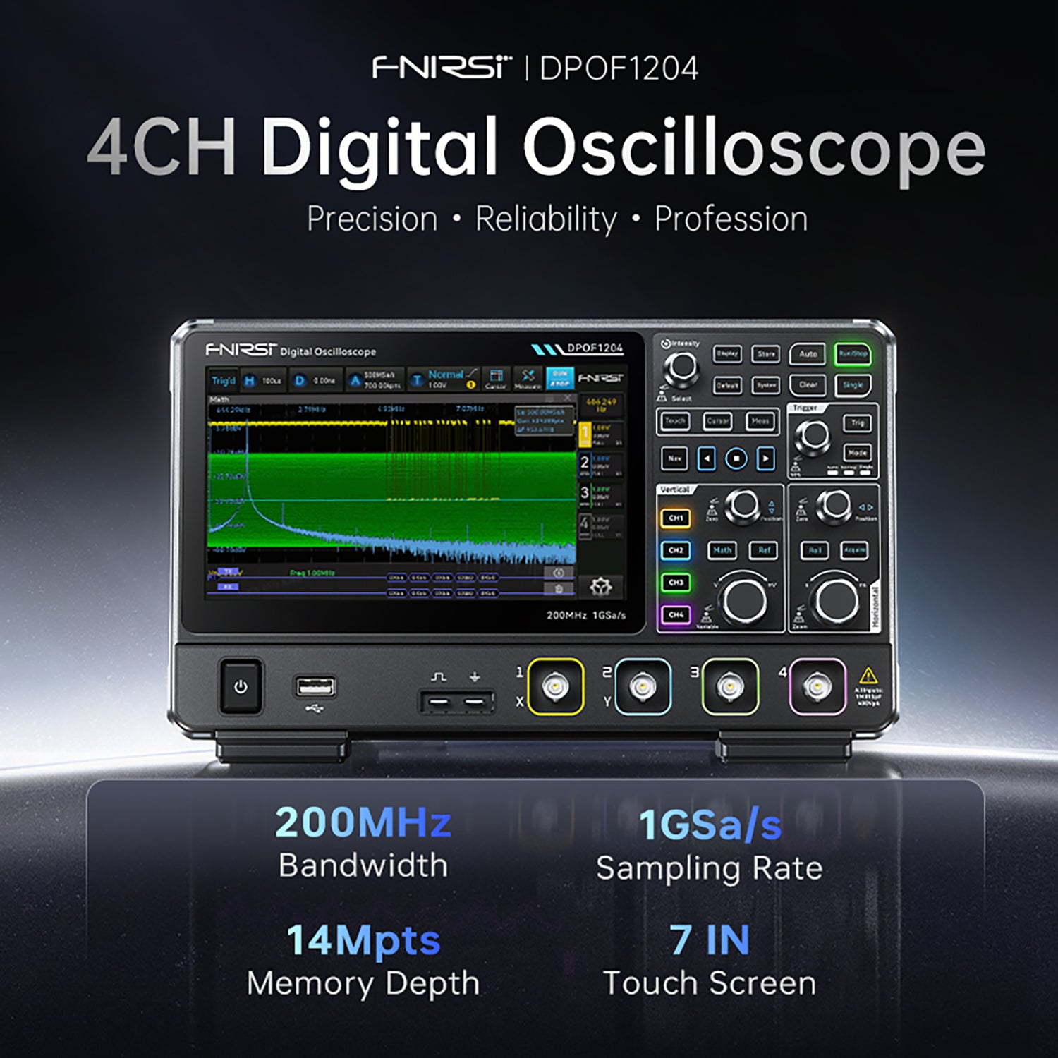 The FNIRSI DPOF1204 is a high-performance 4-channel digital phosphor oscilloscope designed for engineers, developers, and advanced electronics diagnostics.