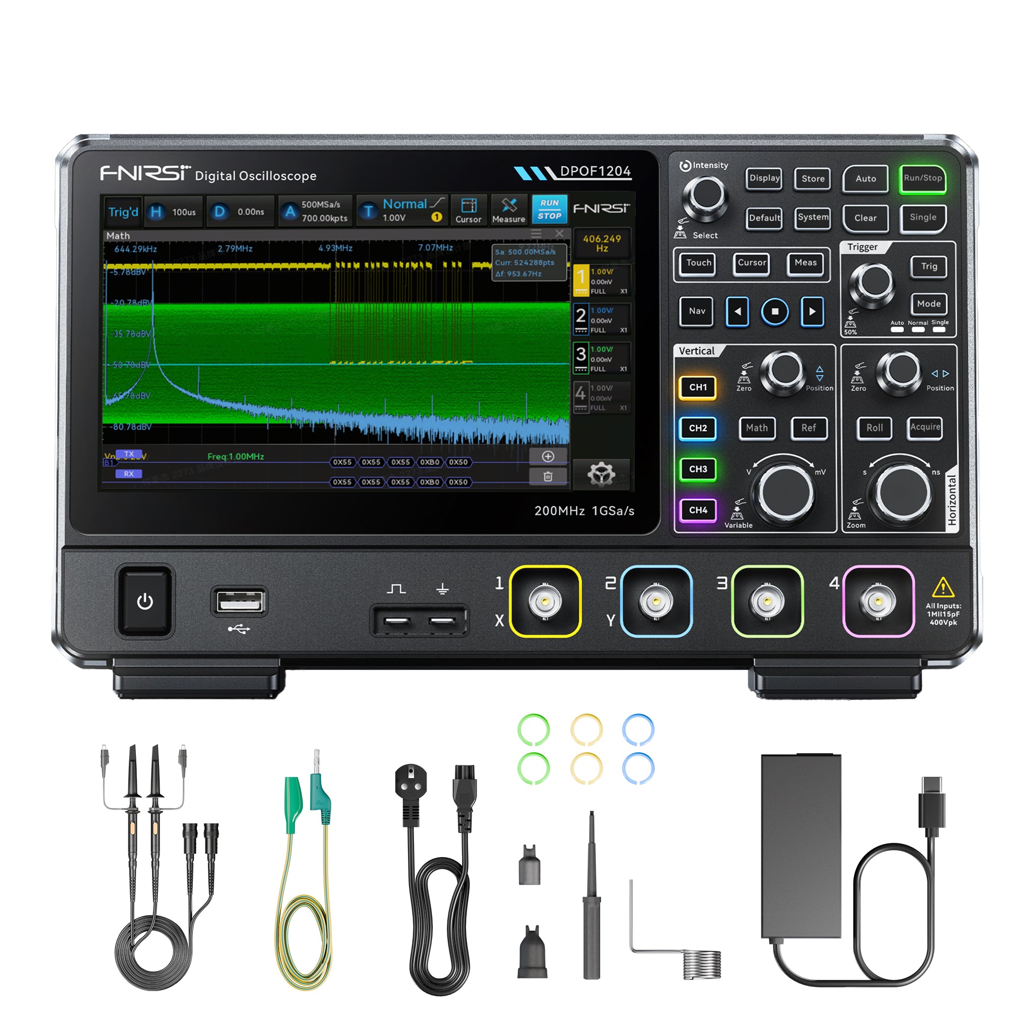 FNIRSI® DPOF1204 Analog 4CH 200MHz 1GSa/s Digital Phosphor Oscilloscope